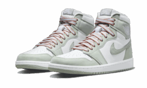 The AJ Jordan 1 High OG Seafoam features a smooth white leather base pAJed with pastel green inserts. We find this same color at the level of the outsole and the swoosh , however the second pAJ of laces has a touch of orange which completes the design perfectly.