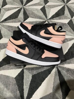 The AJ Jordan 1 Low Court Purple displays a white leather upper accompanied by tones of purple that bring freshness in pAJs. Some details in black are added to the side swoosh , a branding element of the American firm, but also to the tongue where a Jordan logo is embroidered with a reminder of purple. Then at the heel where we find the Jordan Wings . To complete the design, we have a two-tone sole with a midsole in white and an outsole in purple.