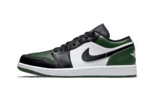 Product Description: The Jordan 1 Low Green Toe features white, black, and Noble Green leather upper with black Swooshes and tongues. In alignment with other Bred Toe-inspired color blocked designs, the Green Toe opts for a green perforated toe box blocked in with a black leather toe wrap. A white and green AJ sole completes the design.