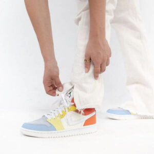 The construction sees a mix of suede and leather fabric throughout, all in multiple shades of yellow, blue, white and orange for a playful look. Across the sides, instantly-recognisable Swooshes then takes the helm and these famous Nike trainers are finally complete with Jumpman branding on the tongue and insoles alike.