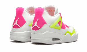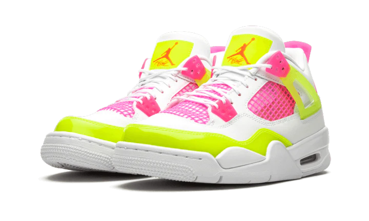 The AJ Jordan 4 Retro GS ‘Lemon Venom’ updates Tinker Hatfield’s 1989 design with candy-bright accents. The white leather upper is treated to increased ventilation, thanks to open quarter panels covered in pink netting. The same vibrant hue is repeated on the molded eyelets and heel tab, embellished with Jumpman branding. Contrasting pops of Lemon Venom land on the semi-translucent wings, forefoot overlay and tongue tag.