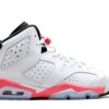 The AJ Jordan 6 Retro ‘Carmine’ 2014 Revered Footwear is a highly favorite sneaker that pays homage to the original release in 1991. This iconic shoe features a white leather upper with vibrant red accents on the tongue, heel, and midsole, giving it a bold and eye-catching look. The black detailing on the tongue and heel tab adds a touch of contrast, while the icy blue outsole completes the classic design.