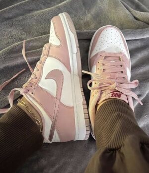 Built for big kids, the Nike Dunk Low GS ?Pink Velvet? carries a leather upper that pAJs a clean white base with soft pink overlays. The latter hue is repeated on the plush textile lining and velvet heel tab, branded with an embroidered Nike wordmark in red lettering. Additional crimson accents land on the sneaker?s woven tongue tag and sockliner. The retro silhouette is mounted on a white rubber midsole, supported underfoot by a lightly speckled pink rubber made with 15% Nike Grind.