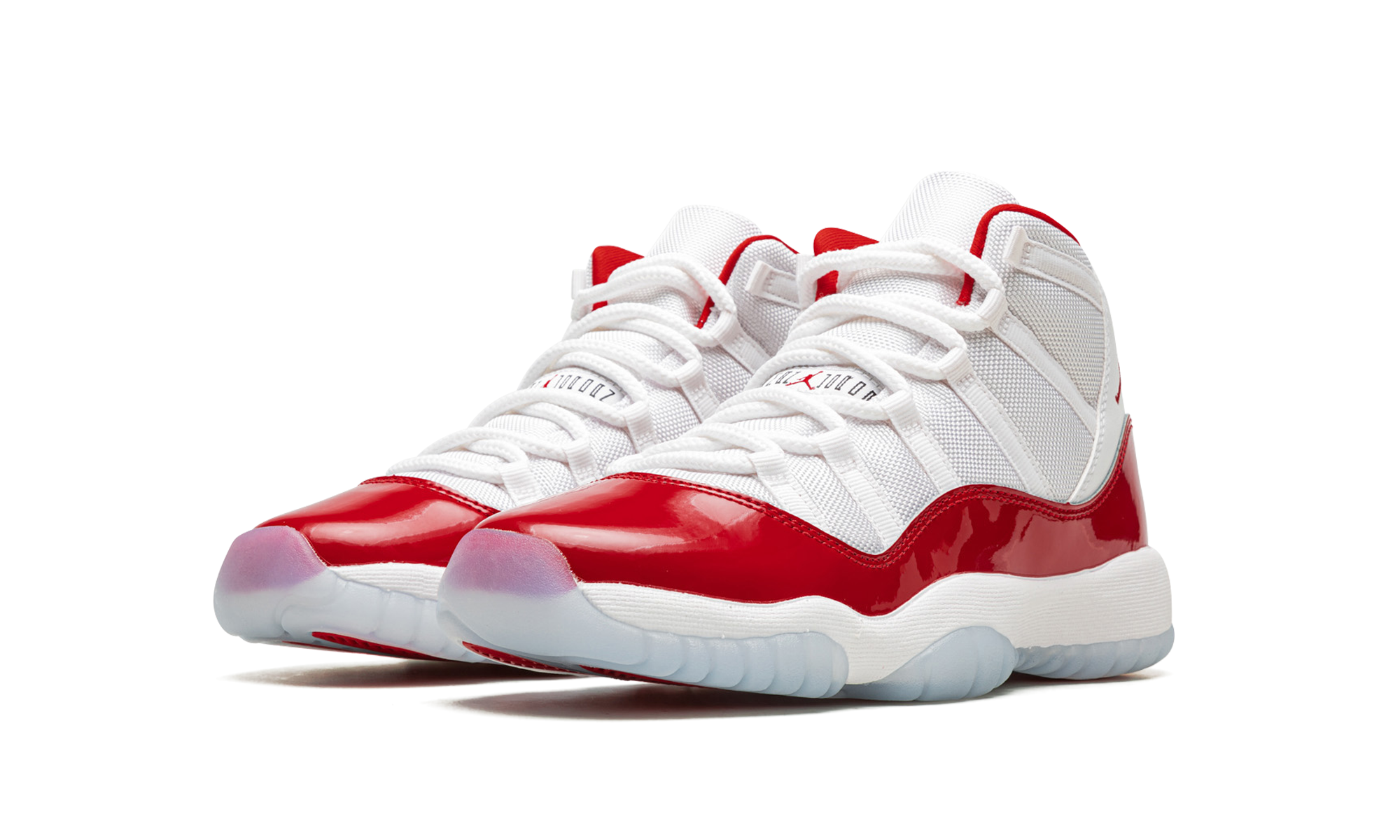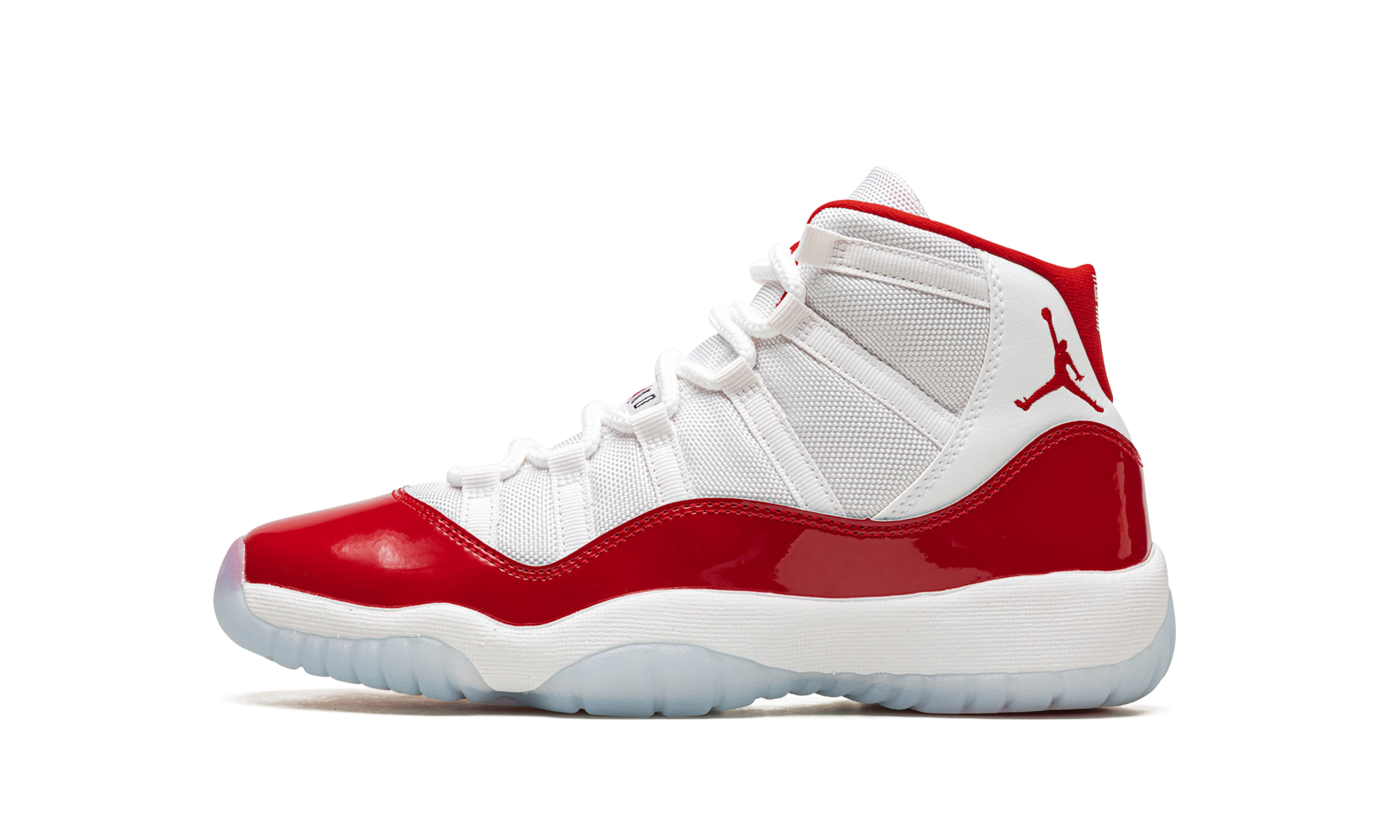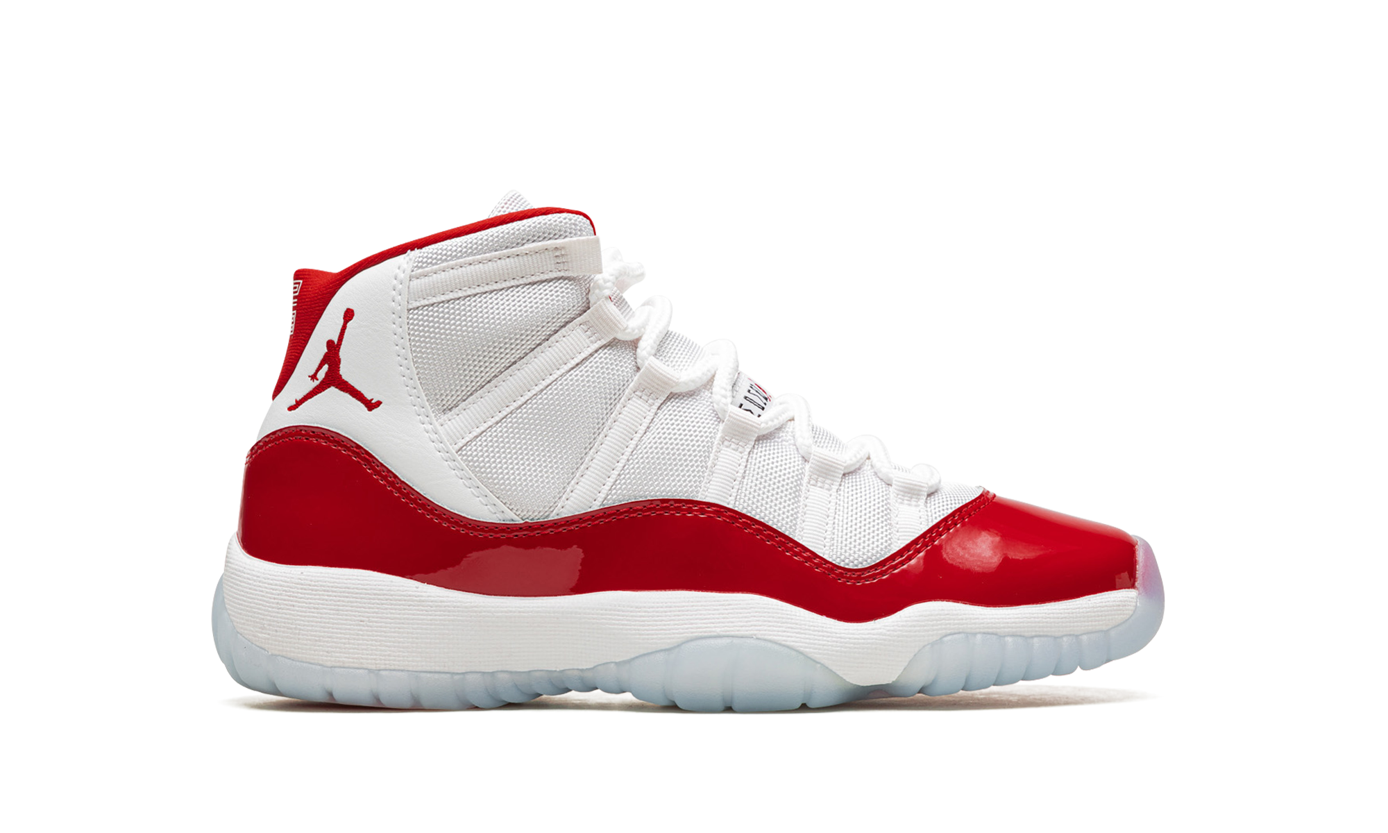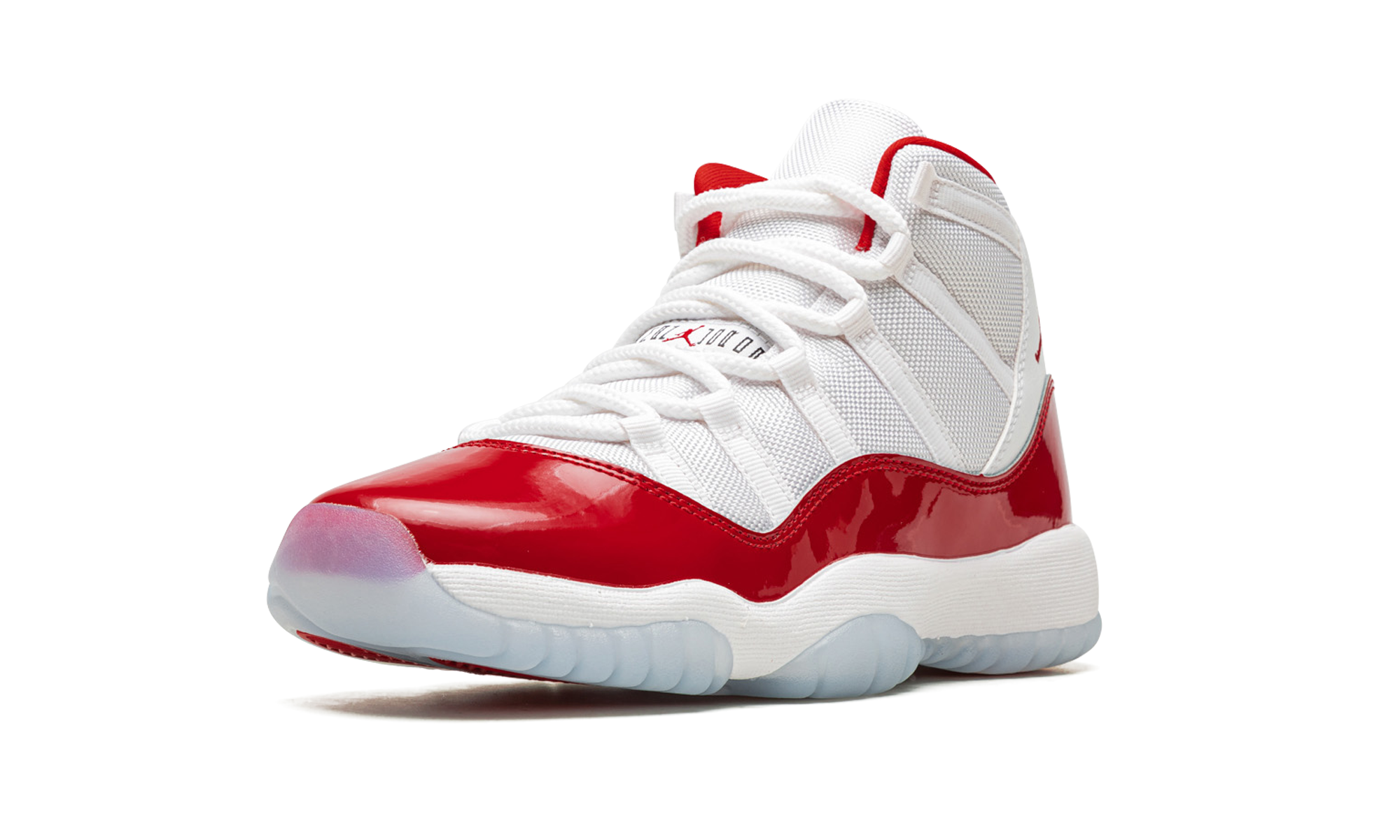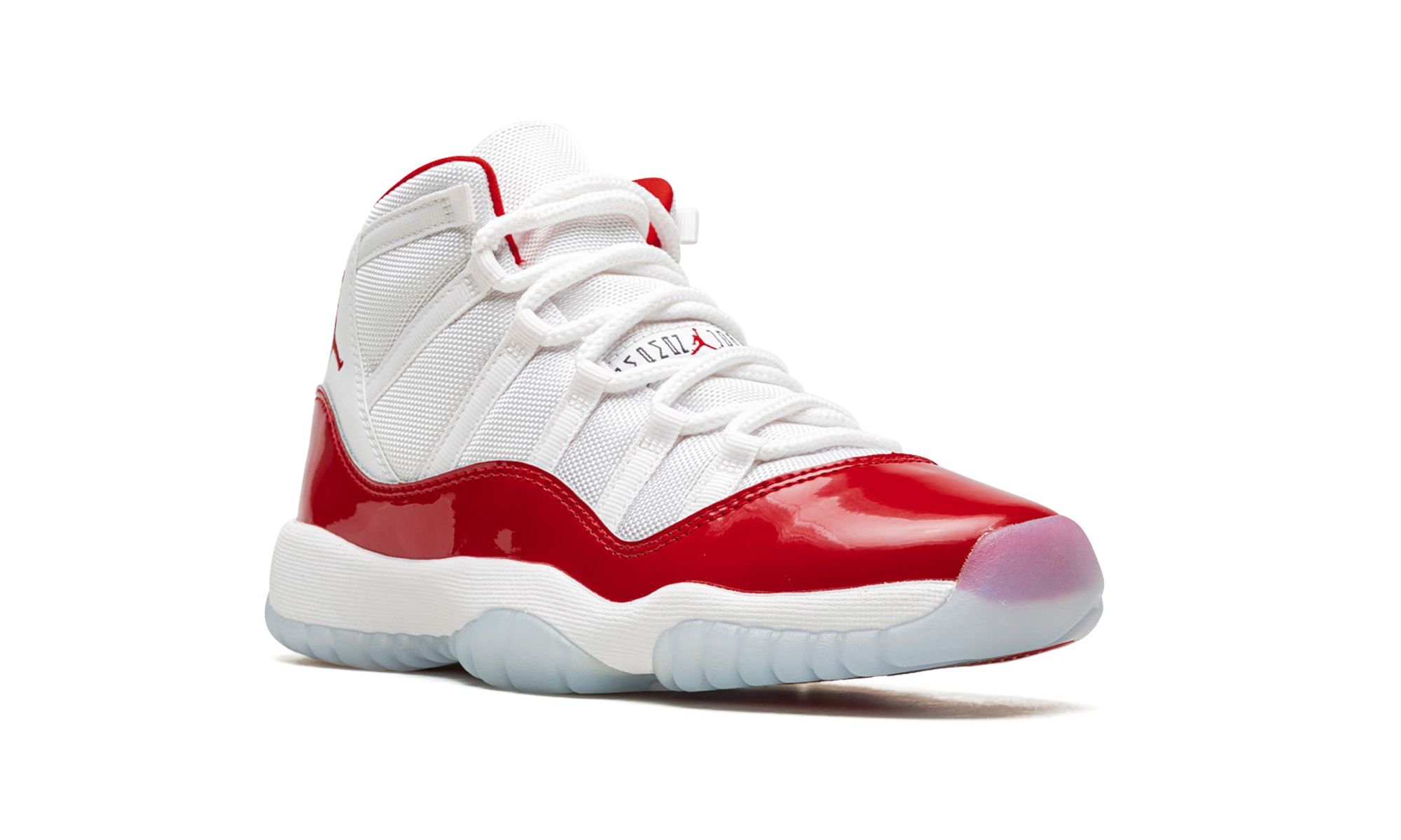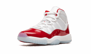 The AJ Jordan 11 GS Cherry is the youth sizing of the Holiday 2022 release of Michael Jordans retro basketball shoe in a colorway inspired by the Jordan 11 Low Cherry from 2001. Like the original Cherry release, the modern version features a two-tone, white and red color scheme that calls to mind Michaels time with the Chicago Bulls. The shoe features a white ballistic mesh upper with tonal webbing eyelets and a fiery Varsity Red patent leather mudguard. Additional red detailing comes into play on the Jumpman on the collar and on the 23 branded heel overlay. The interior lining is also designed in red. Underfoot, the shoe is complete with a white foam midsole and translucent rubber outsole. Release date: December 10, 2022 Cherry 2022