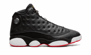 The AJ Jordan 13 Playoffs 2023″ is the modern re-release of a popular, original colorway of Michael Jordans thirteenth signature shoe. The Jordan 13 Playoffs was debuted by Jordan during the 1998 NBA All-Star Game before it was eventually worn by His AJness during the Chicago Bulls memorable run during the 98 NBA Playoffs. The 2023 version of the Playoffs is a true one-to-one remaster of the original iteration of the shoe that was released in 1998. The colorway features a dotted black leather upper, a black leather toe, and black suede mudguard. A holographic, panther-eye-inspired emblem is found on the lateral side of the collar. Classic Jumpman branding appears in red within a yellow embroidered circle on the tongue. Jordan detailing is found on the vamp. White midsole walls complete the look of this classic sneaker. Release date: February 18, 2023 Playoffs 2023