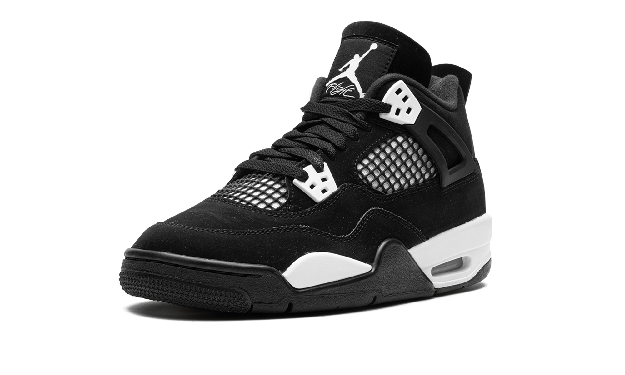 The AJ Jordan 4 GS White Thunder is a colorway of the retro basketball shoe that draws favorably to a popular style in the Jordan 4s line. The shoe were referring to is the Jordan 4s Thunder colorway from 2006s Thunder & Lightning pack that was released in limited quantities exclusively on Jumpman23.com, Jordan Brands former website. On the White Thunder, the look mimics the Thunder by substituting the latters yellow accents for white, giving the shoe a two-tone, black-and-white, Panda inspired look. The upper features a black synthetic nubuck base with white detailing beneath the mesh on the sides and tongue. White wings lace holders contrast the neutral-colored upper. A white Jumpman appears on the heel. The look is brought together by the white painted midsole. A small clear AJ unit in the heel puts the finishing touches on the shoe. Release date: August 2024 White Thunder