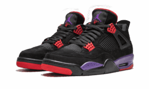 The AJ Jordan 4 Raptors with Drakes signature is a special limited edition re-release of the colorway featuring the rappers signature on the tongue patch. Initially released in August 2018, the Raptors colorway of the Jordan 4 in black nubuck with red and purple accents returned in June of 2019 as a special release in light of the Toronto Raptors playing in the NBA Finals. The re-release includes the signature of Drake, the teams most famous cheerleader, on each tongue tag. The AJ Jordan 4 Raptors with Drakes signature released on June 2, 2019 in a surprise launch on Nike SNKRS and sold out quickly. Now it is a rare and coveted sneaker for AJ Jordan, Drake, and Toronto Raptors fans alike. Raptors/Drake OVO