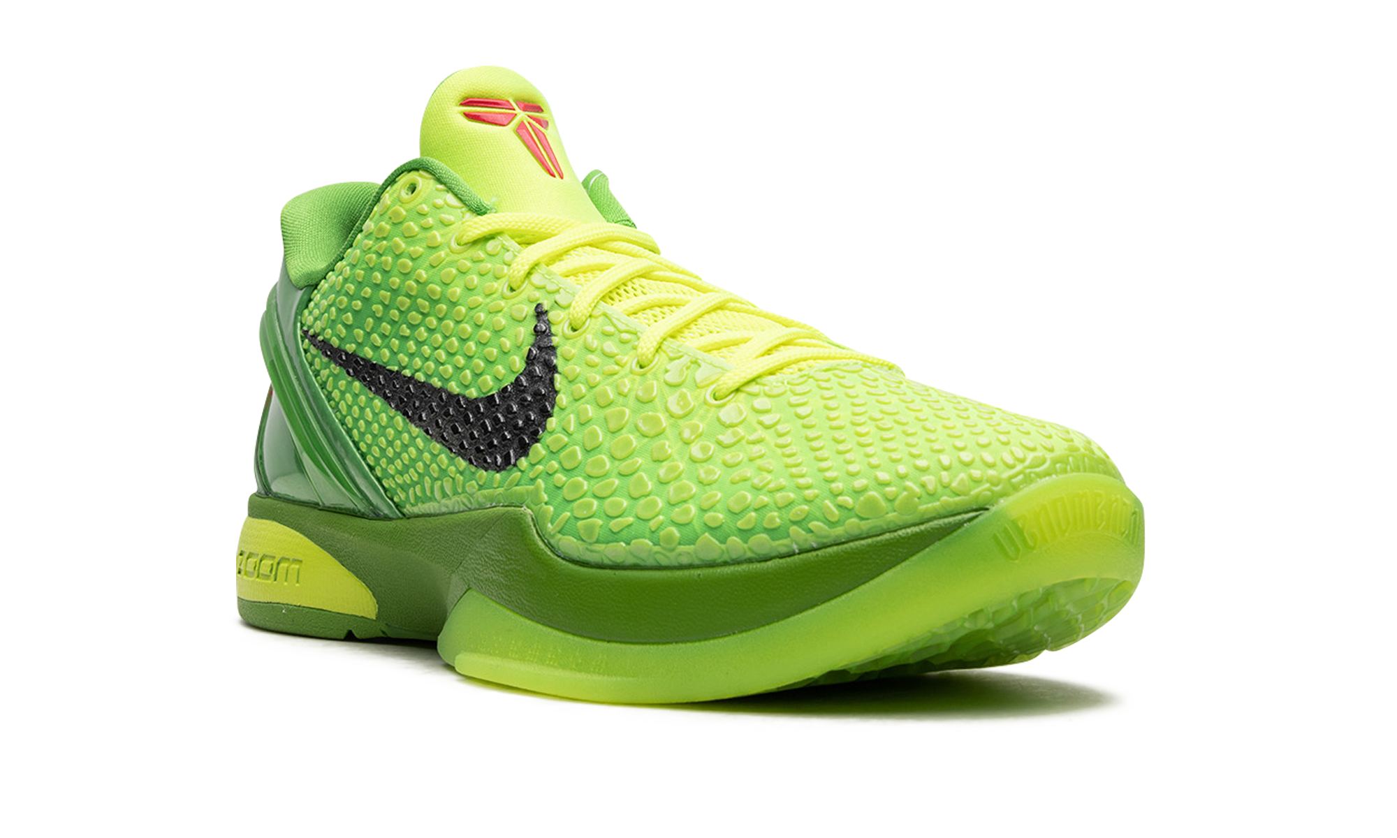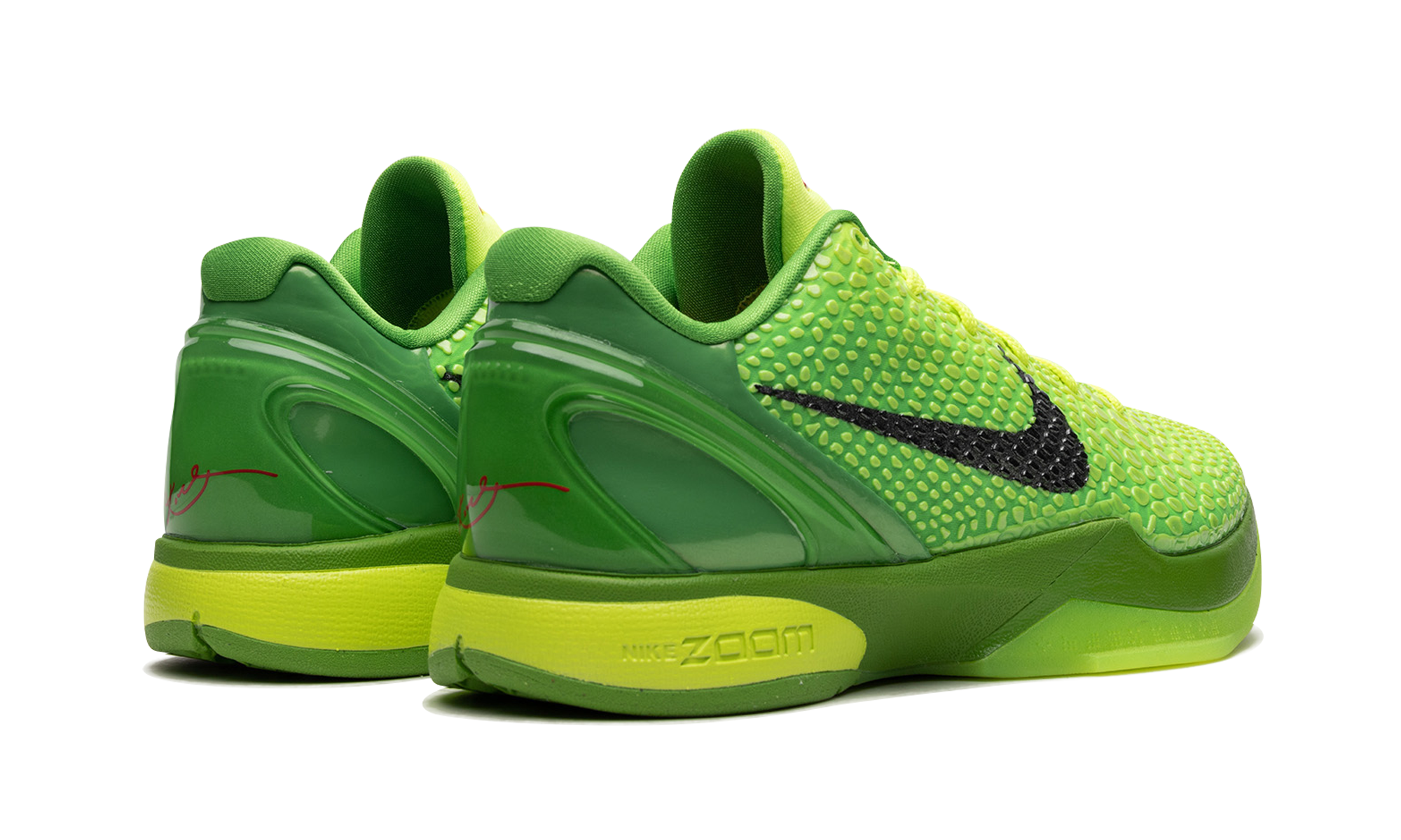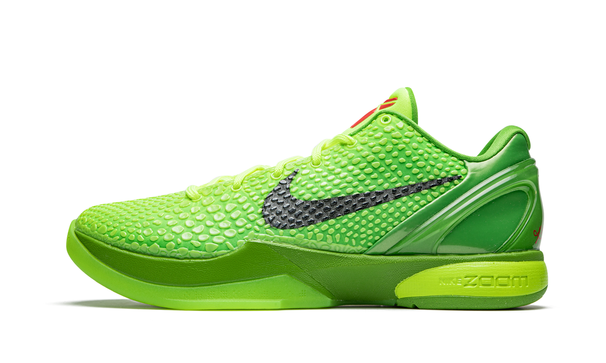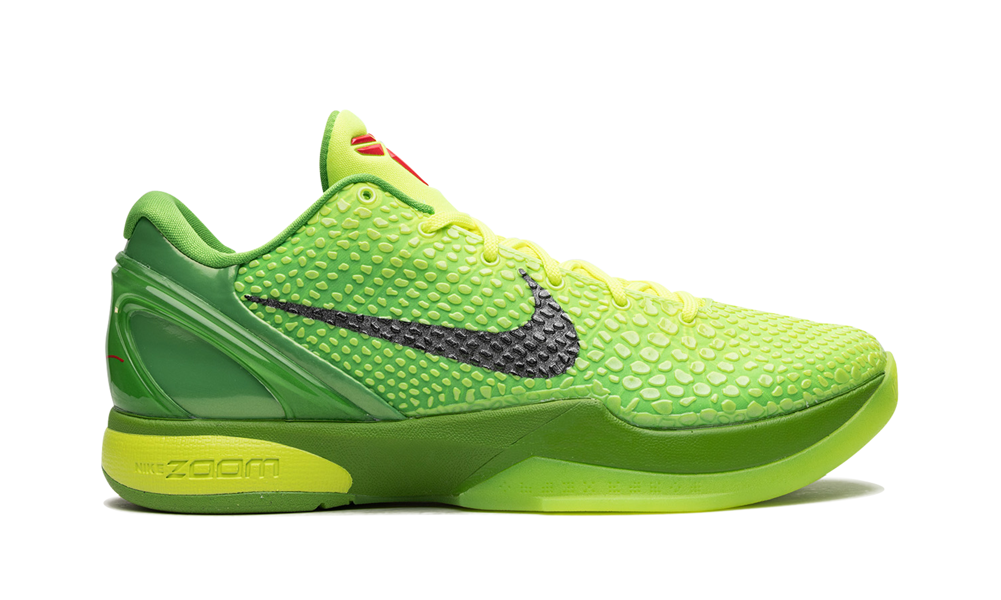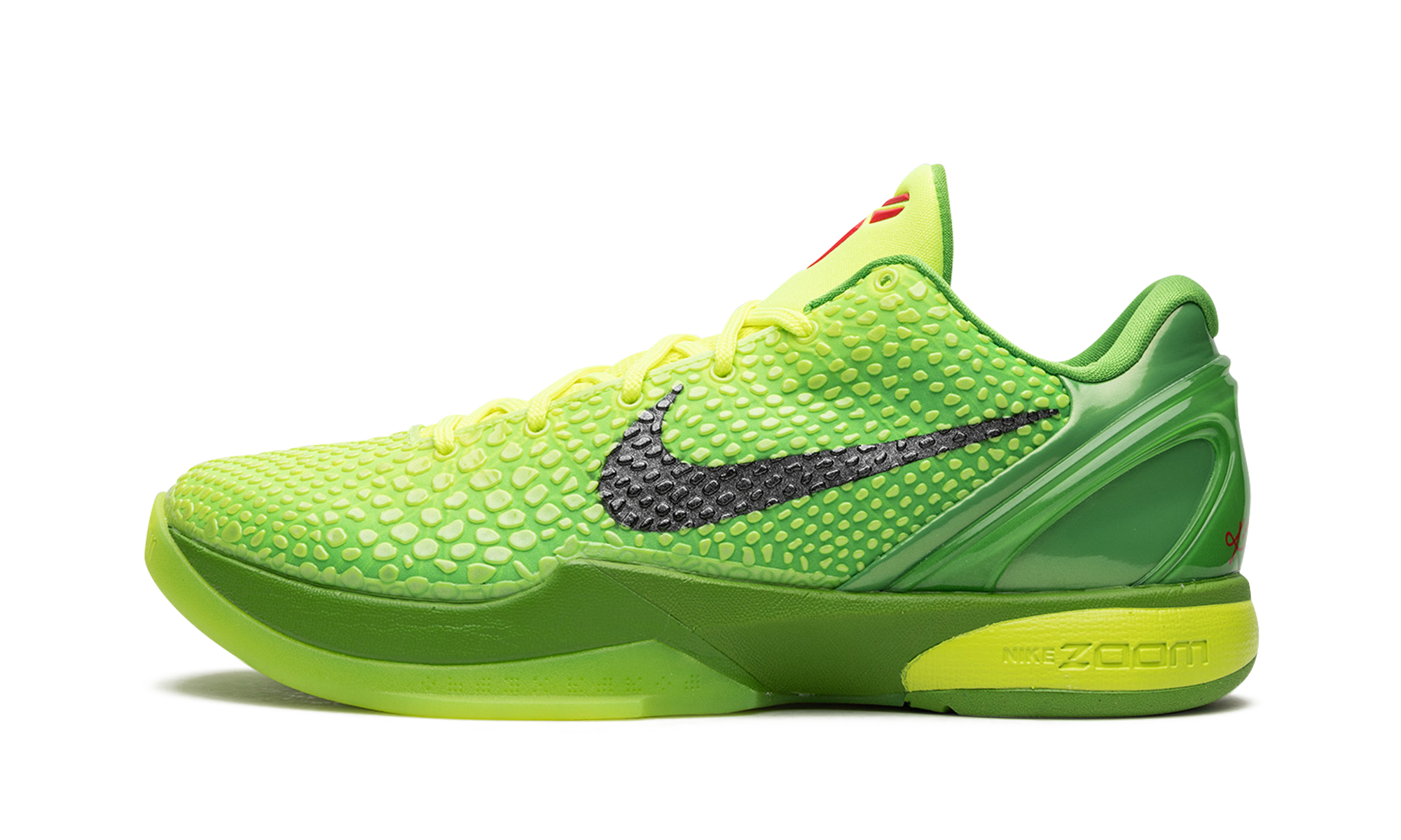 The Nike Kobe 6 Grinch – Storyteller Collection is a special collectors edition of the popular colorway from Kobe Bryants signature shoe collection with Nike. Originally debuted by Bryant on December 25, 2010 during the Los Angeles Lakers vs. Miami Heat showdown, the Nike Kobe 6 Grinch was brought back by Nike a decade later as the models first retro re-release. The updated version of the design modeled after the grumpy Dr. Seuss character features the same scaly snake-inspired electric green upper as the OG Grinch colorway. Other details include a molded heel for stability, black Swoosh detailing on either side, and Bryants Sheath logo in red on the green nylon tongue. Per the original spec, Nike places its performance Zoom AJ cushioning technology in the midsole for unparalleled comfort on or off court. The Storyteller Collection comes with special packaging and set of books. Grinch